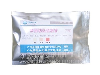 “敌鼠”属于茚二酮类杀鼠药,常使用其钠盐,称为敌鼠钠盐,是目前使用较普遍的一种新型抗凝血杀鼠剂,对人畜有剧毒。成人口服0.06-0.25g敌鼠钠盐可引起中毒,0.5-2.5g可致死。近年来,因误食、使用不当或有意投毒引起的人和牲畜敌鼠钠盐中毒死亡的事件时有发生,因此,测定食品中敌鼠钠盐具有重要的意义。本公司研制的敌鼠钠盐检测管,可以快速地检测样品是否受到敌鼠钠盐的污染。